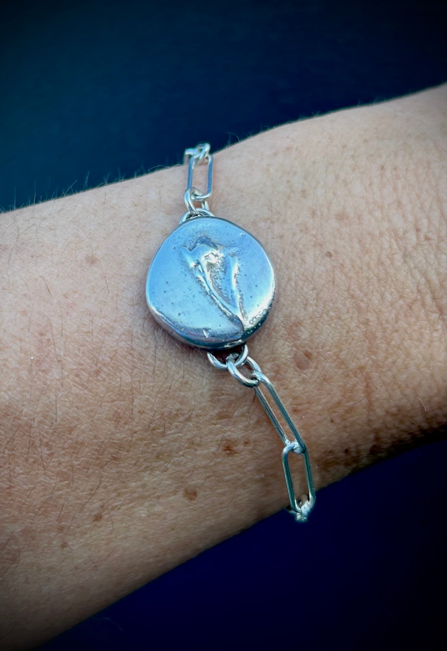 Each pendant is cast by hand and may vary slightly in size, the bracelet link is made with sterling silver.