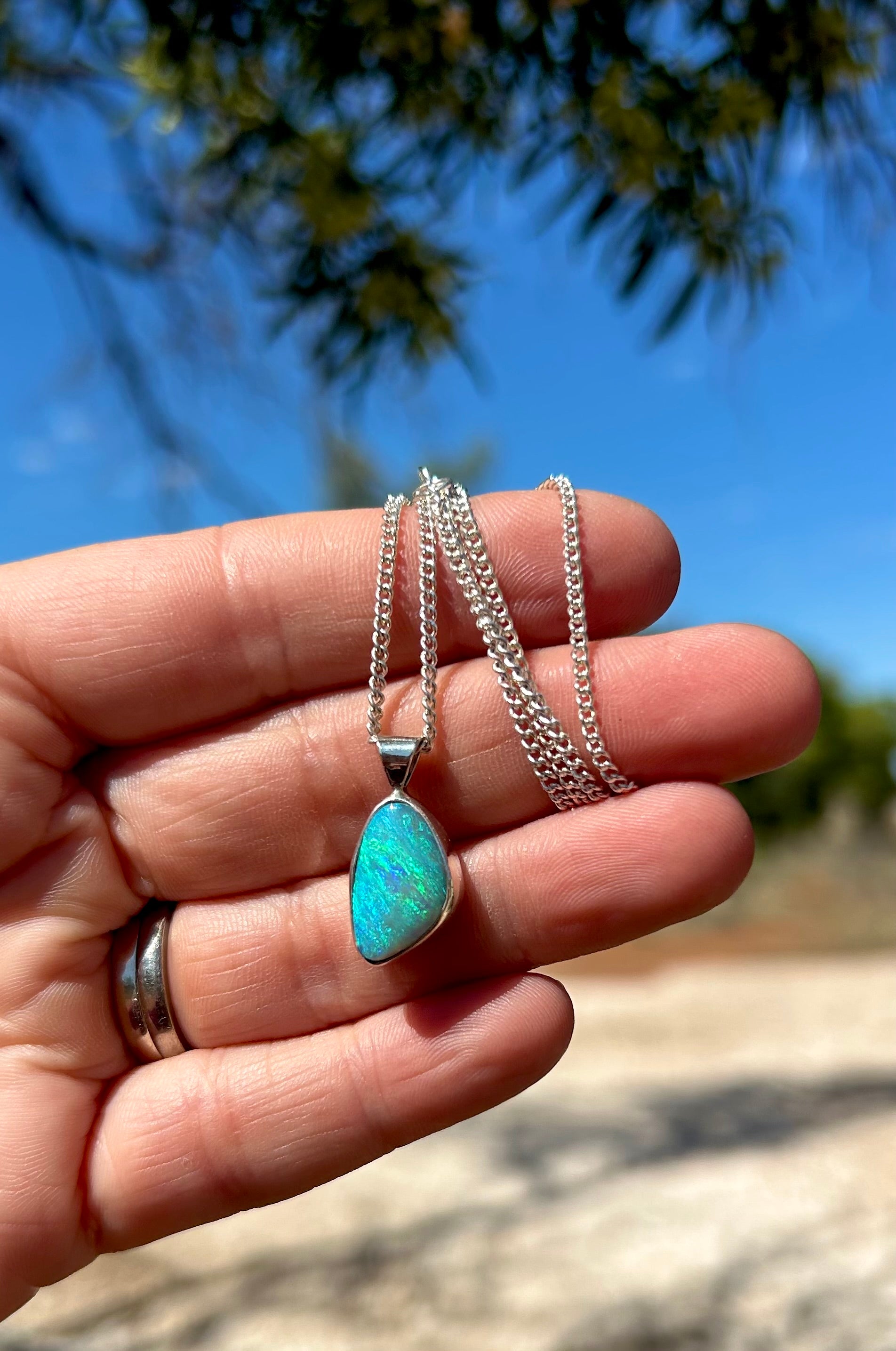 This incredible stone has a majestic feel to it, it is a solid black crystal Lightning Ridge stone that we found on the Coocoran Opal fields.