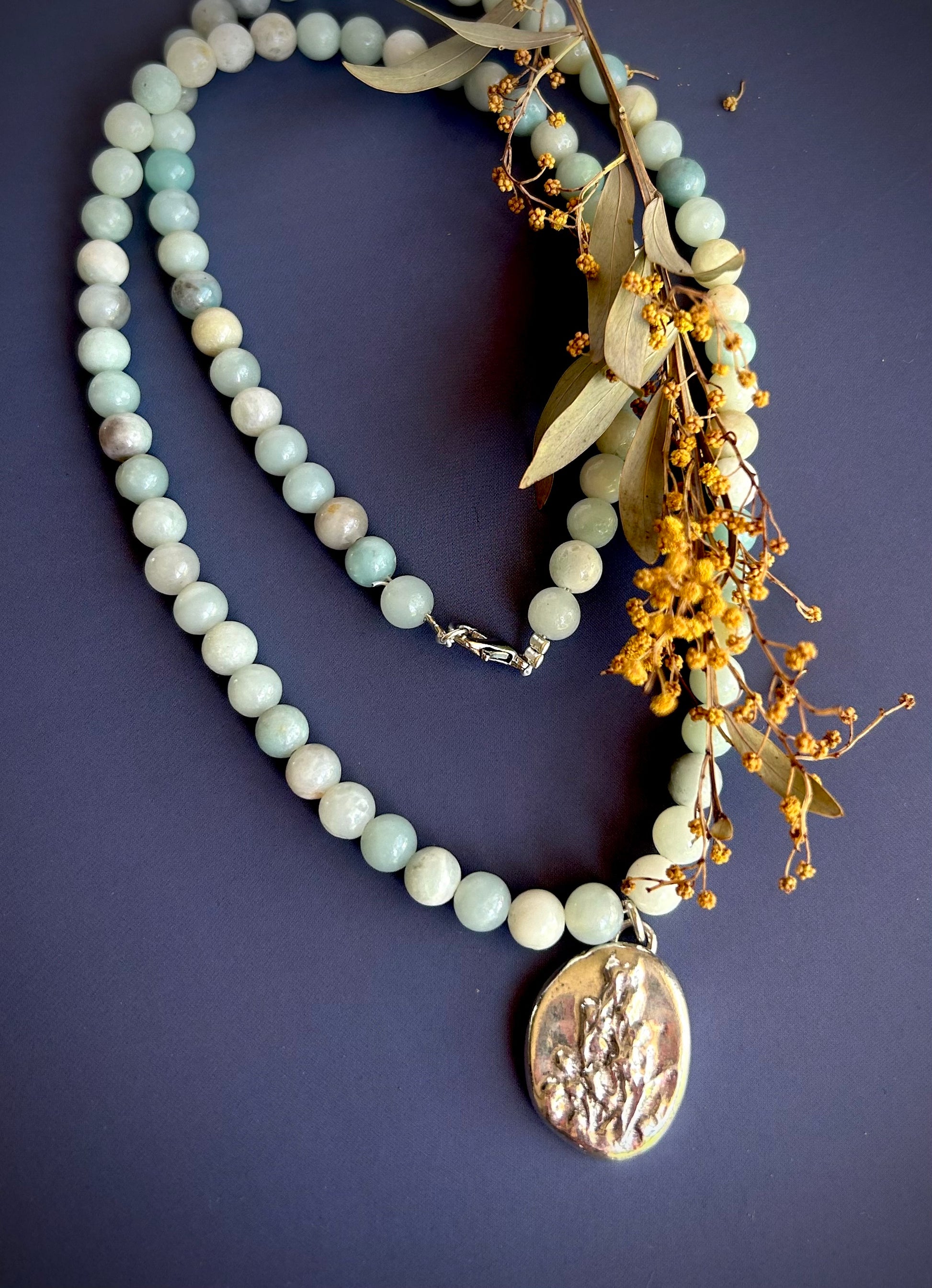 The wattle pendant has been made with fresh wattle flowers, cast by hand via the sand casting method in Lisa's studio.